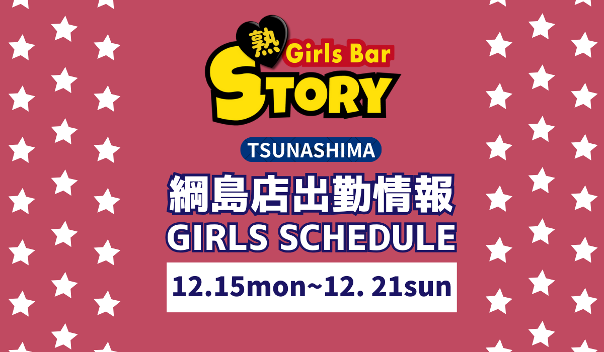 【ガールズバー ストーリー熟綱島】12月15日(月)〜出勤情報のお知らせ!