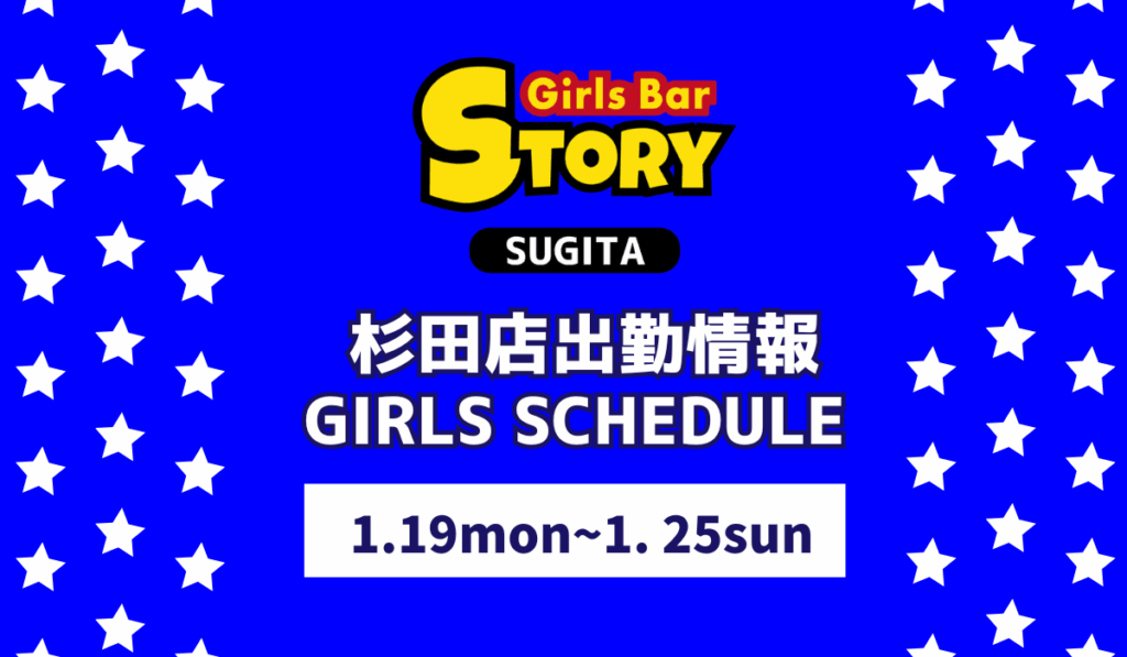 【ガールズバー ストーリー杉田】1月19日(月)〜出勤情報のお知らせ!