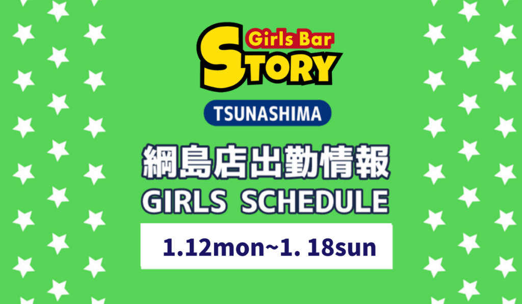 【ガールズバー ストーリー熟綱島】1月12日(月)〜出勤情報のお知らせ!