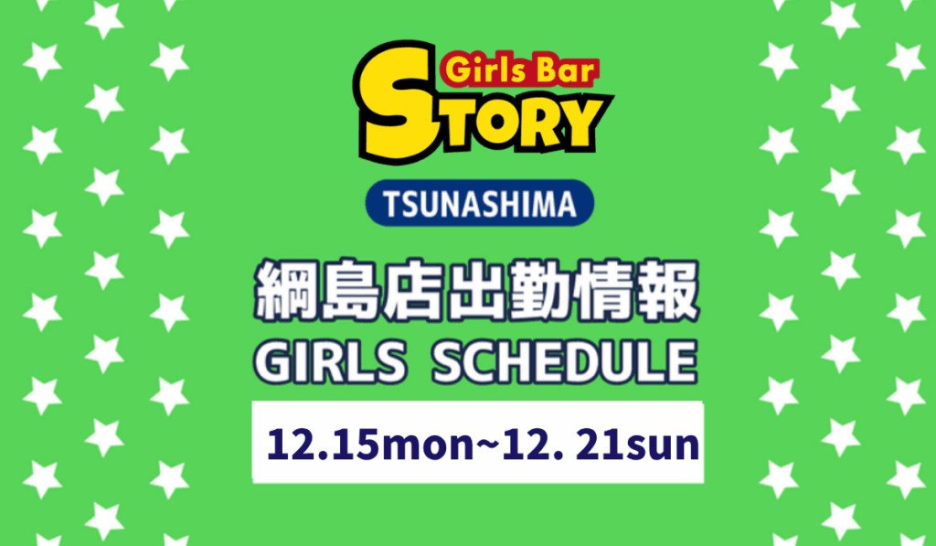 【ガールズバー ストーリー熟綱島】12月15日(月)〜出勤情報のお知らせ!